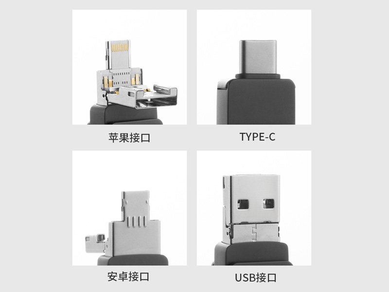 Interface Type-C, interface Android Micro, interface Apple 8 Pin, interface USB