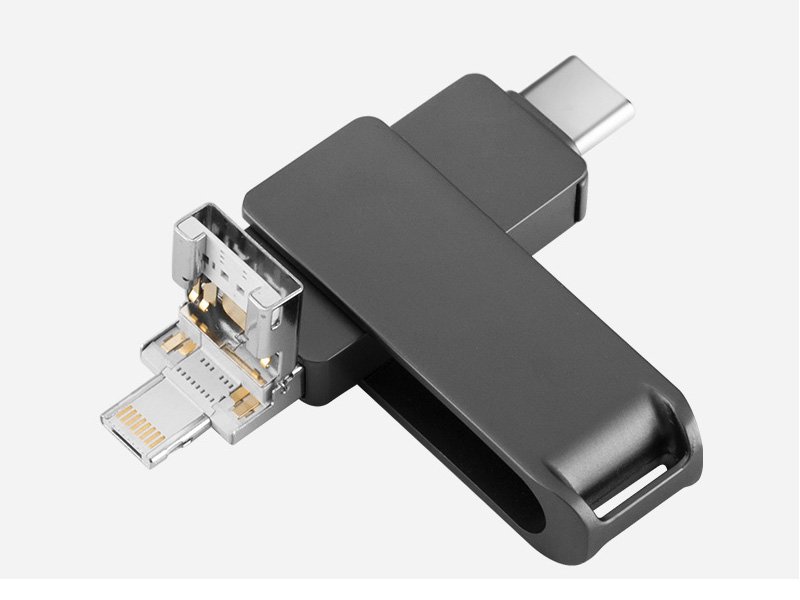Quatro tipos de conectores: A porta USB 3.0 permite que se possa copiar ou mover os dados sem esforço entre smartphone, tablet e computador sem usar serviços em nuvem. Suporta seus smartphones com interfaces Type-C, Android Micro e Apple 8 Pin.